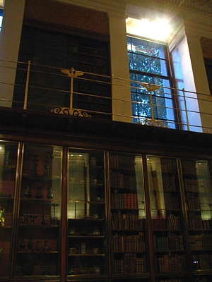 棚の中には本だけでなく、胸像とかカップとか展示品も置いてあります。