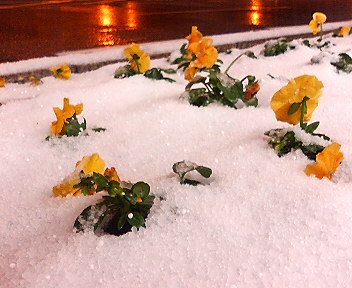 みぞれ(あられ?)混じりの雪です。